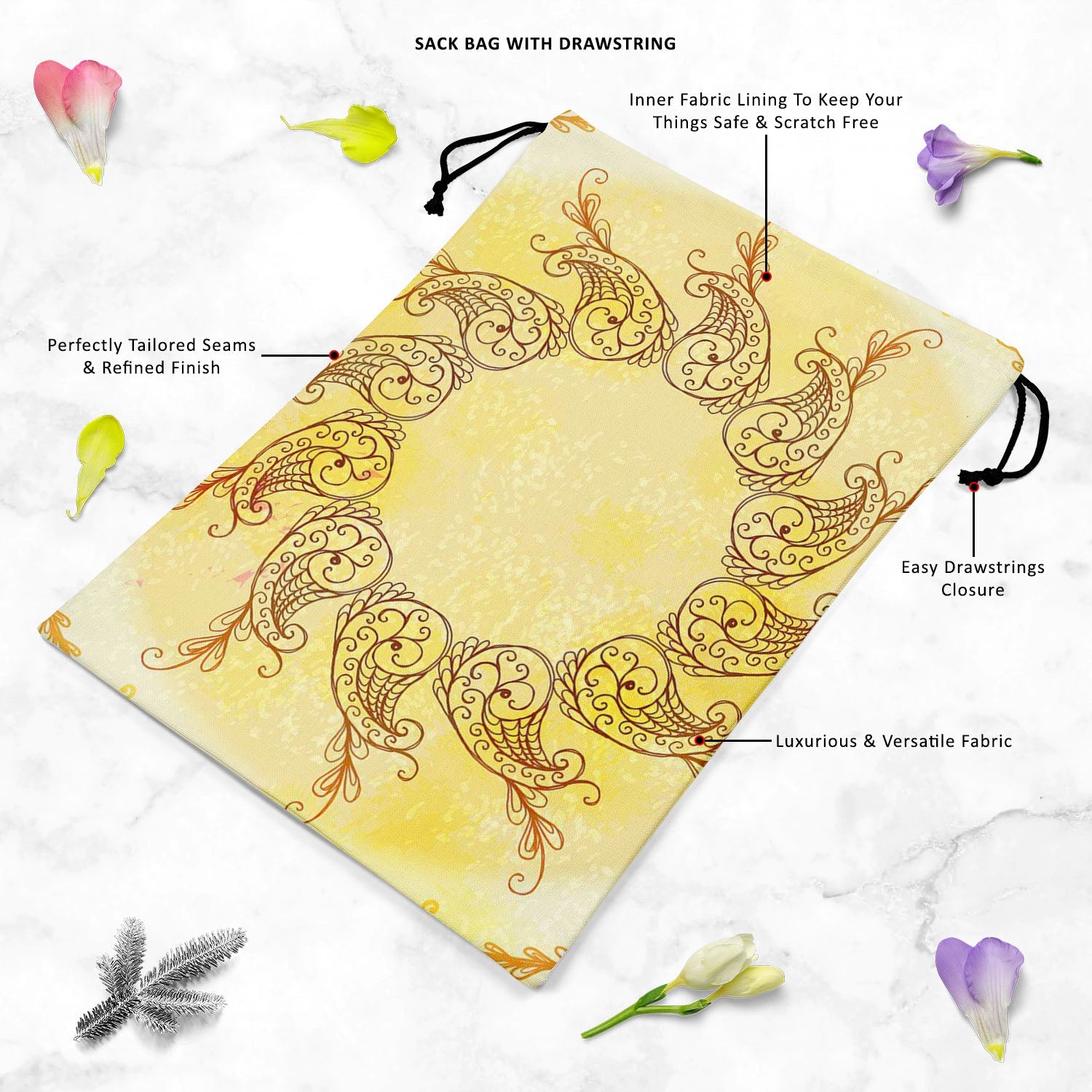 - MULTIPURPOSE & FULLY FEATURED: Stylish sack bag / cinch bag / shoe bag / laundry bag / travel bag | Inner fabric lining to keep your things safe & scratch free | Drawstrings closure