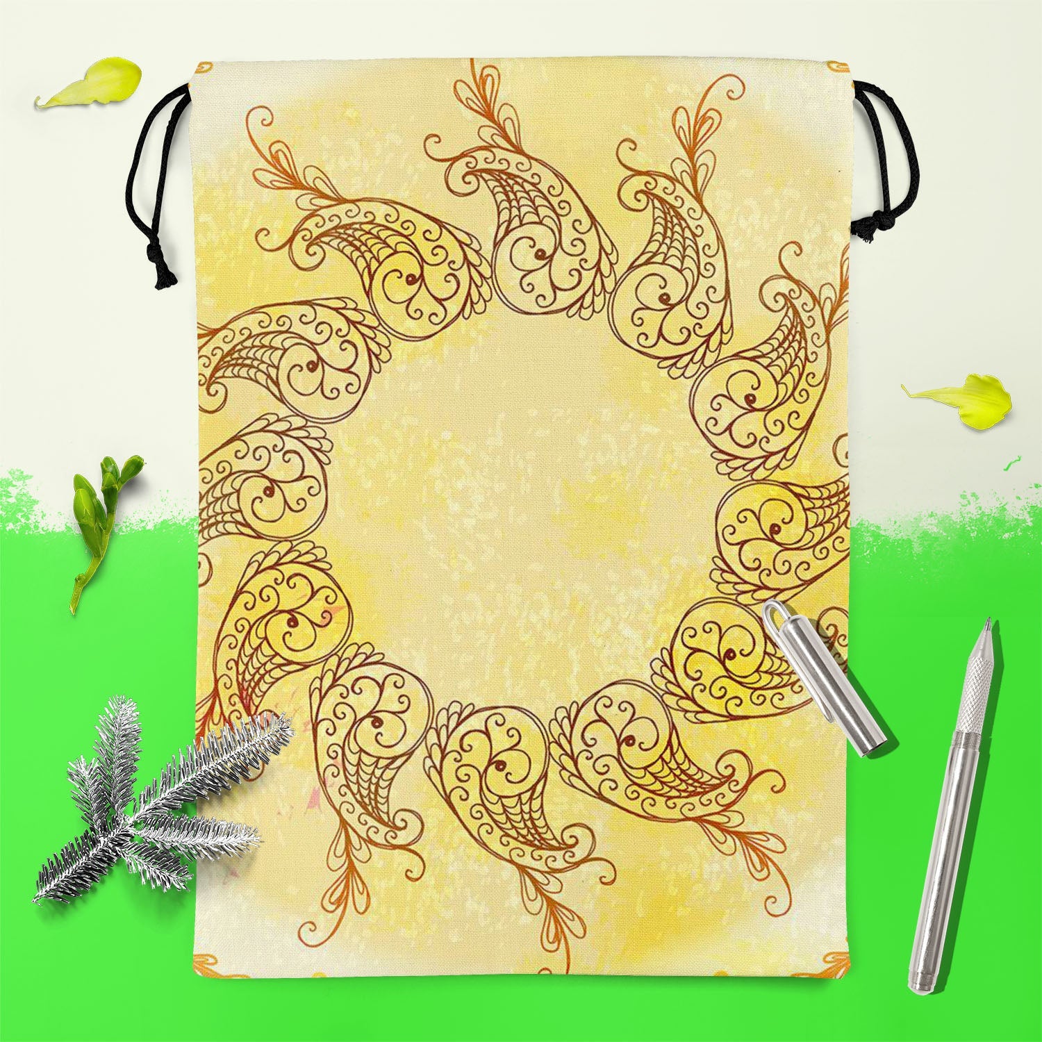 Ethnic Circular Ornament D6 Reusable Sack Bag | Bag for Gym, Storage, Vegetable & Travel