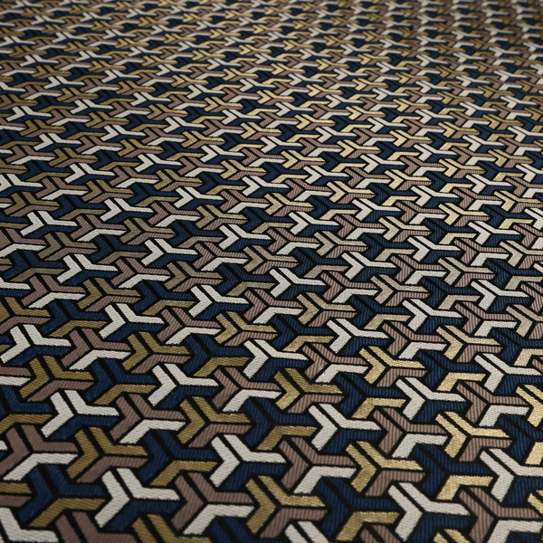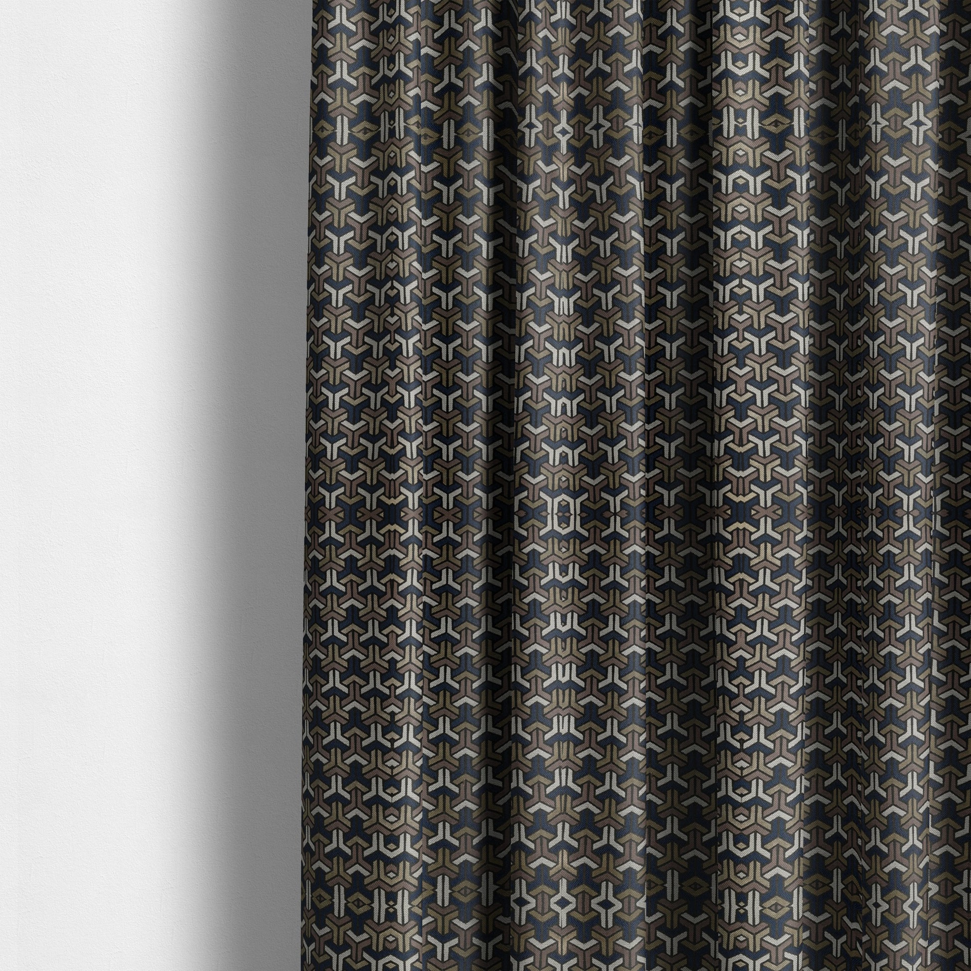 Oslo Geometric Pattern Blue Gold Black Toned Upholstery Fabric CTR-1256 - Made To Measure Curtains