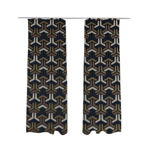 Experience the ultimate in luxury and style with our Oslo geometric pattern blue gold black toned upholstery fabric. Featuring a modern geometric design, this fabric is perfect for creating elegant and custom made curtains that will elevate any room. Made to measure for a perfect fit, with durable and high-quality materials for long-lasting beauty.