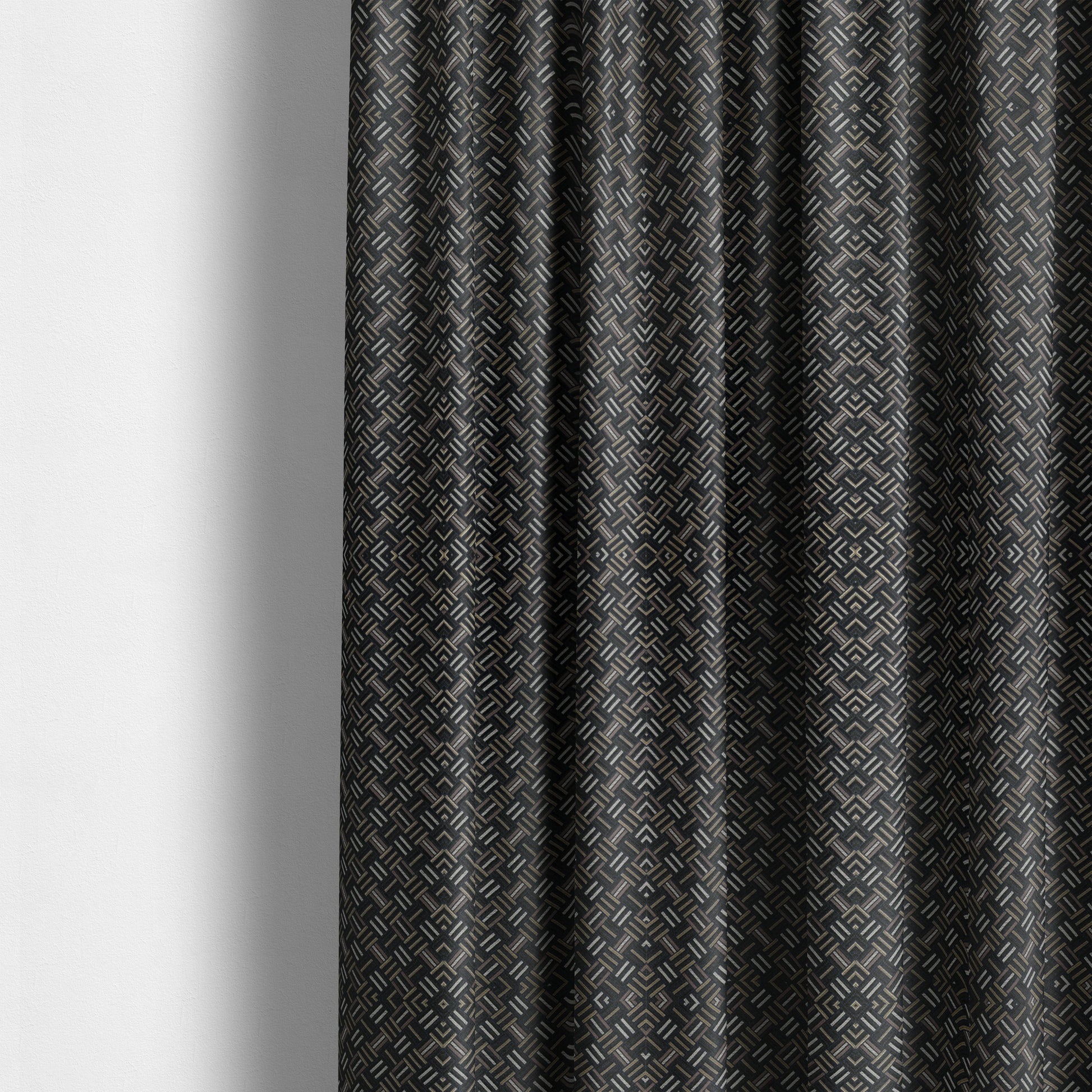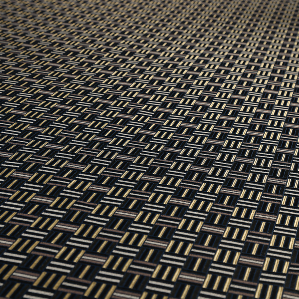 Oslo Geometric Pattern Blue Gold Black Toned Upholstery Fabric CTR-1257 - Made To Measure Curtains