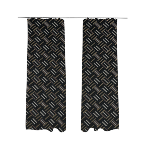 This Oslo geometric patterned upholstery fabric features a striking blue, gold, and black colour scheme. Made to measure curtains add a touch of sophistication and style to any room. Elevate your home decor with this elegant and versatile fabric.