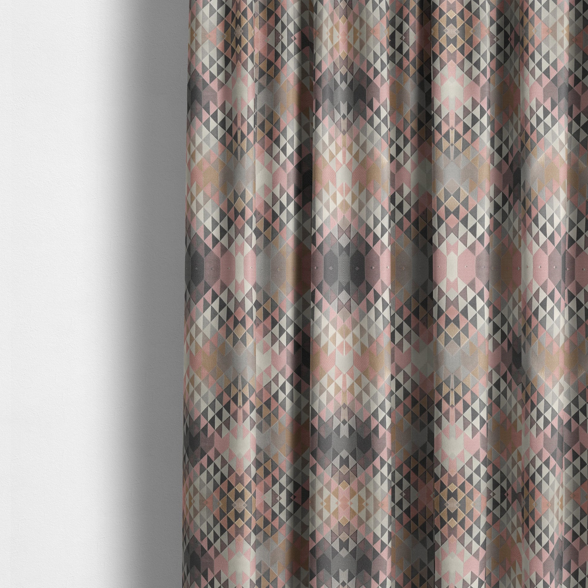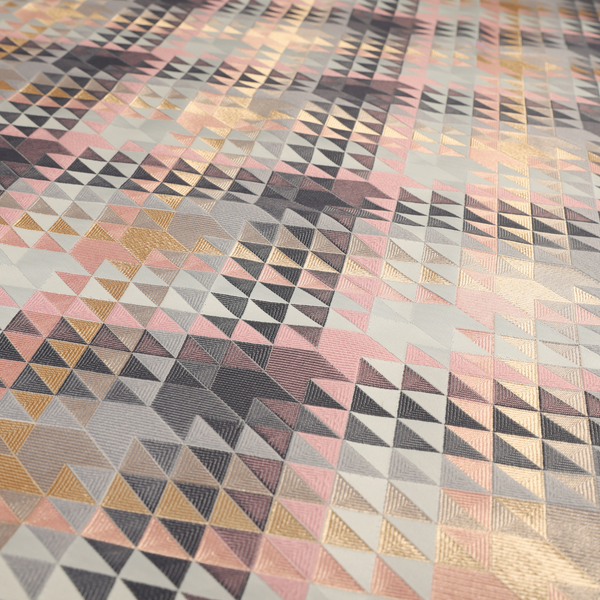 Oslo Geometric Pattern Grey Pink Gold Toned Upholstery Fabric CTR-1261 - Made To Measure Curtains